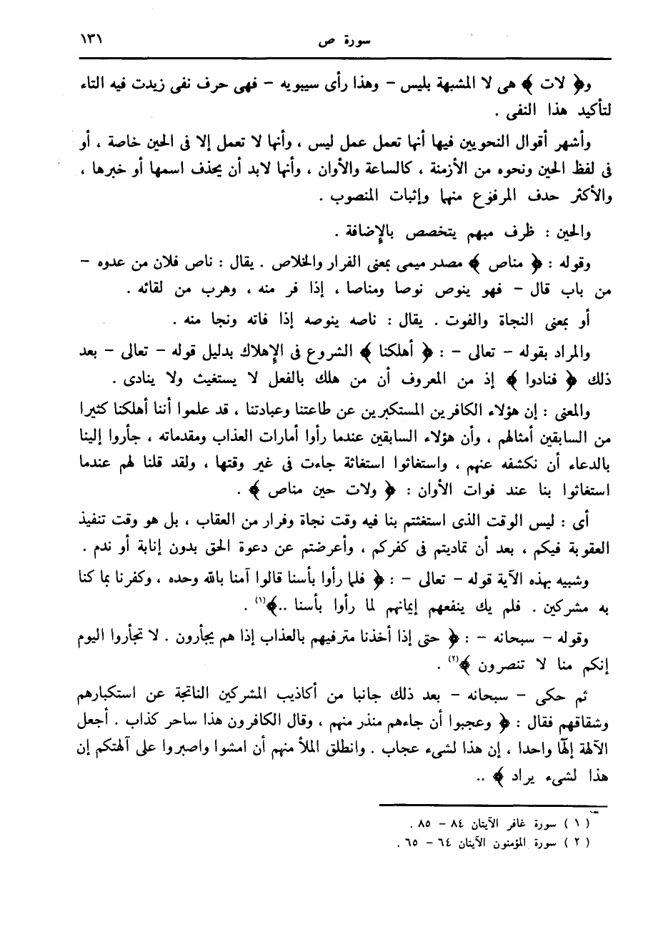ولاتَ هي لا المشبهة بليس- وهذا رأى سيبويه- فهي حرف نفى زيدت فيه التاء لتأكيد هذا النفي.