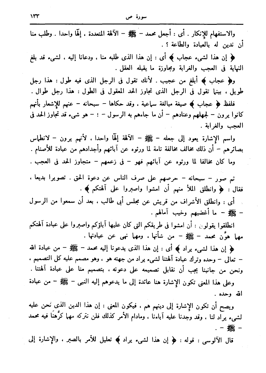 واسم الإشارة يعود إلى جعله صلّى الله عليه وسلم الآلهة إلها واحدا، لأنهم يرون- لانطماس بصائرهم- أن ذلك مخالف مخالفة تامة لما ورثوه عن آبائهم وأجدادهم من عبادة للأصنام.