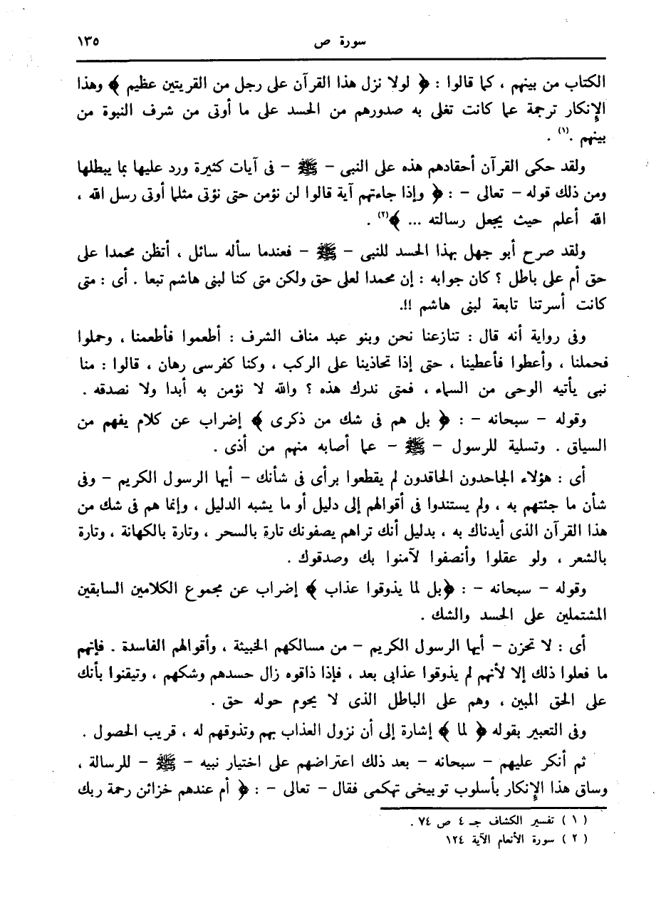 ولقد حكى القرآن أحقادهم هذه على النبي صلّى الله عليه وسلم في آيات كثيرة ورد عليها بما يبطلها ومن ذلك قوله- تعالى-: وَإِذا جاءَتْهُمْ آيَةٌ قالُوا لَنْ نُؤْمِنَ حَتَّى نُؤْتى مِثْلَ ما أُوتِيَ رُسُلُ اللَّهِ، اللَّهُ أَعْلَمُ حَيْثُ يَجْعَلُ رِسالَتَهُ ... «2» .