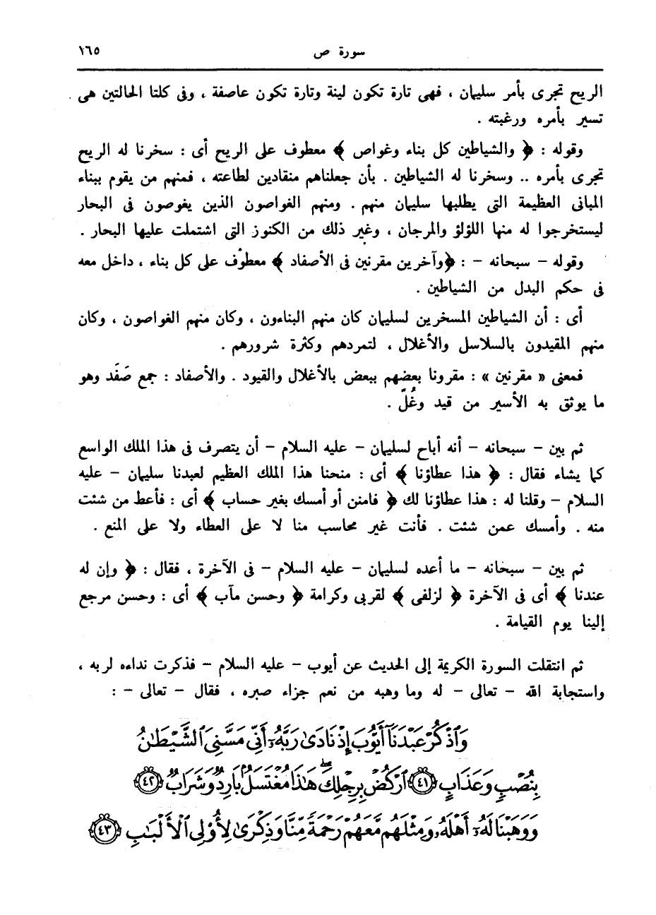 ثم انتقلت السورة الكريمة إلى الحديث عن أيوب- عليه السلام- فذكرت نداءه لربه، واستجابة الله- تعالى- له وما وهبه من نعم جزاء صبره، فقال- تعالى-: