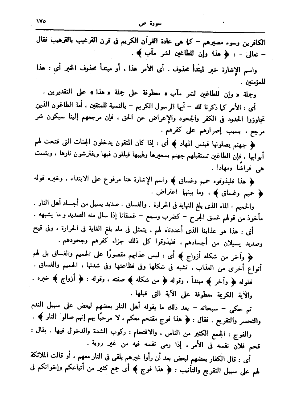 الكافرين وسوء مصيرهم- كما هي عادة القرآن الكريم في قرن الترغيب بالترهيب فقال- تعالى-: هذا وَإِنَّ لِلطَّاغِينَ لَشَرَّ مَآبٍ.