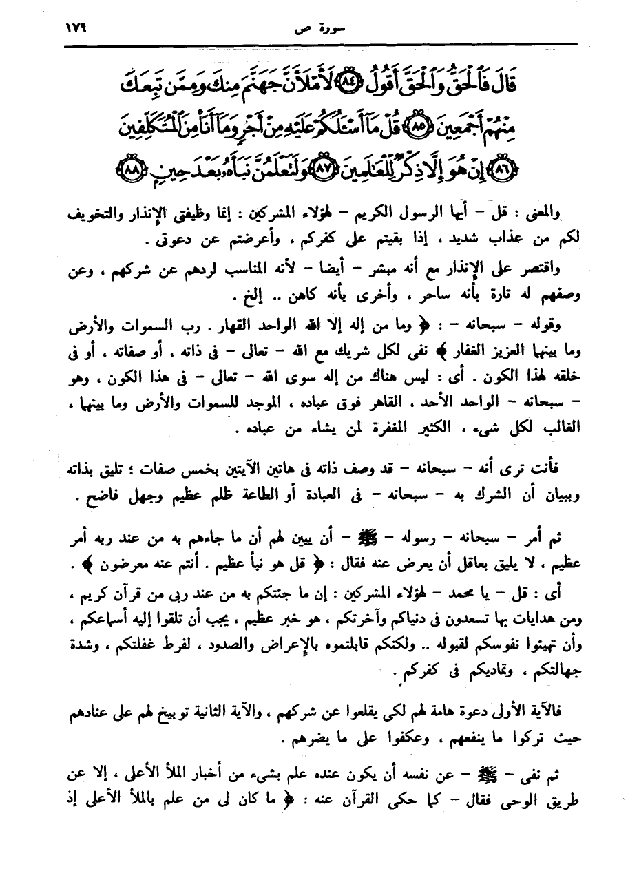 ثم أمر- سبحانه- رسوله صلّى الله عليه وسلم أن يبين لهم أن ما جاءهم به من عند ربه أمر عظيم، لا يليق بعاقل أن يعرض عنه فقال: قُلْ هُوَ نَبَأٌ عَظِيمٌ. أَنْتُمْ عَنْهُ مُعْرِضُونَ.