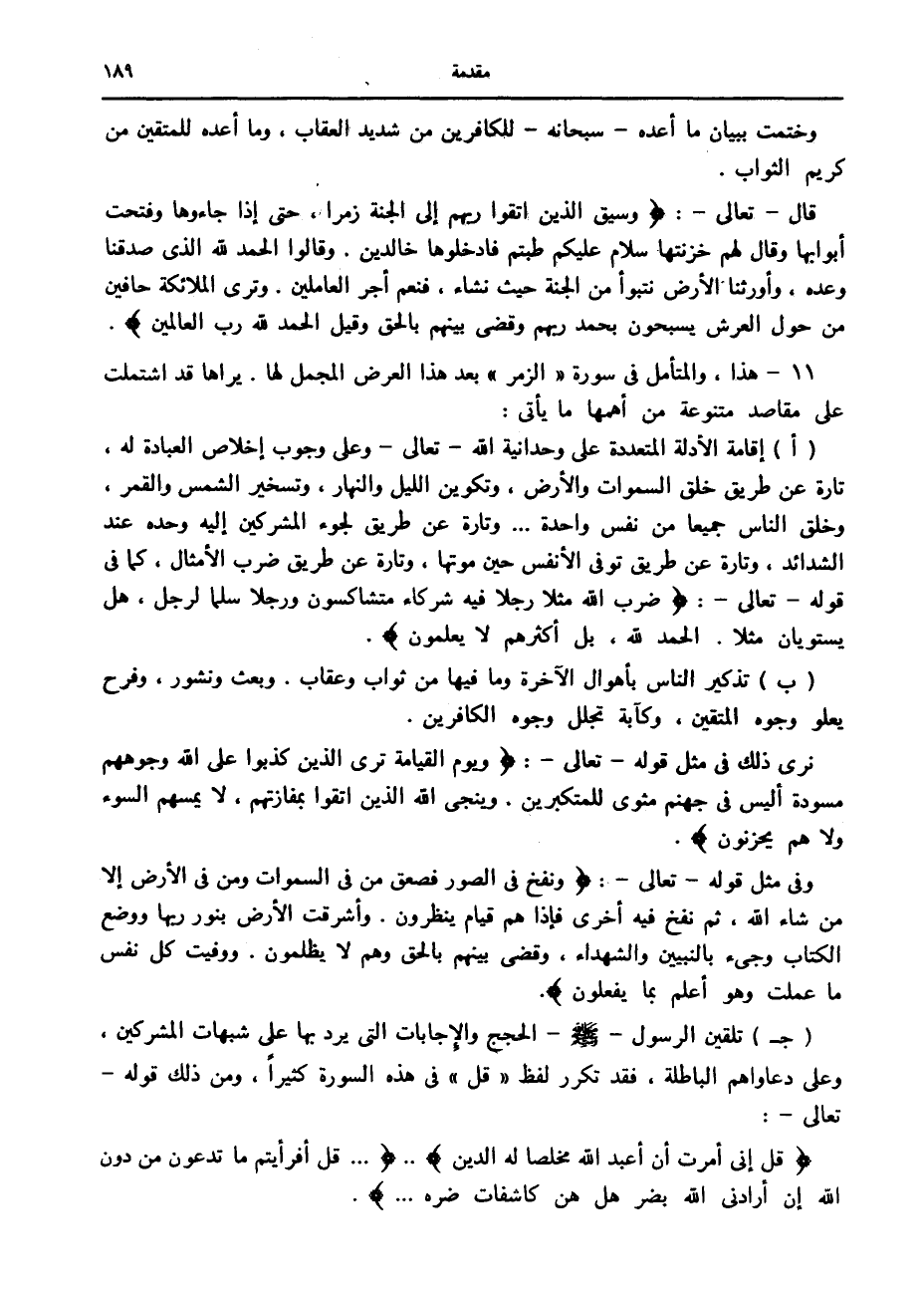 11- هذا، والمتأمل في سورة «الزمر» بعد هذا العرض المجمل لها. يراها قد اشتملت على مقاصد متنوعة من أهمها ما يأتى: