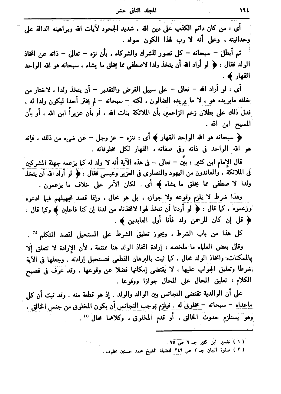 (2) صفوة البيان ج 2 ص 249 لفضيلة الشيخ محمد حسنين مخلوف.