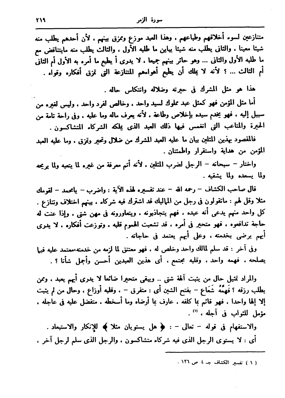 (1) تفسير الكشاف ج 4 ص 126.