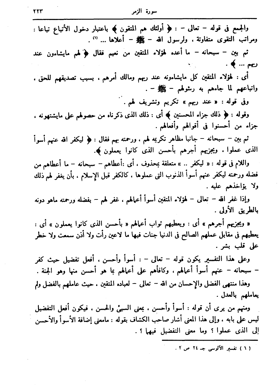 (1) تفسير الآلوسى ج 24 ص 2.