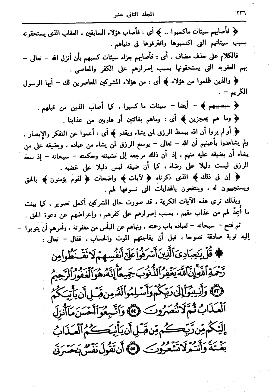 ثم فتح- سبحانه- لعباده باب رحمته، ونهاهم عن اليأس من مغفرته، وأمرهم أن يتوبوا إليه توبة صادقة نصوحا، قبل أن يفاجئهم الموت والحساب، فقال- تعالى: