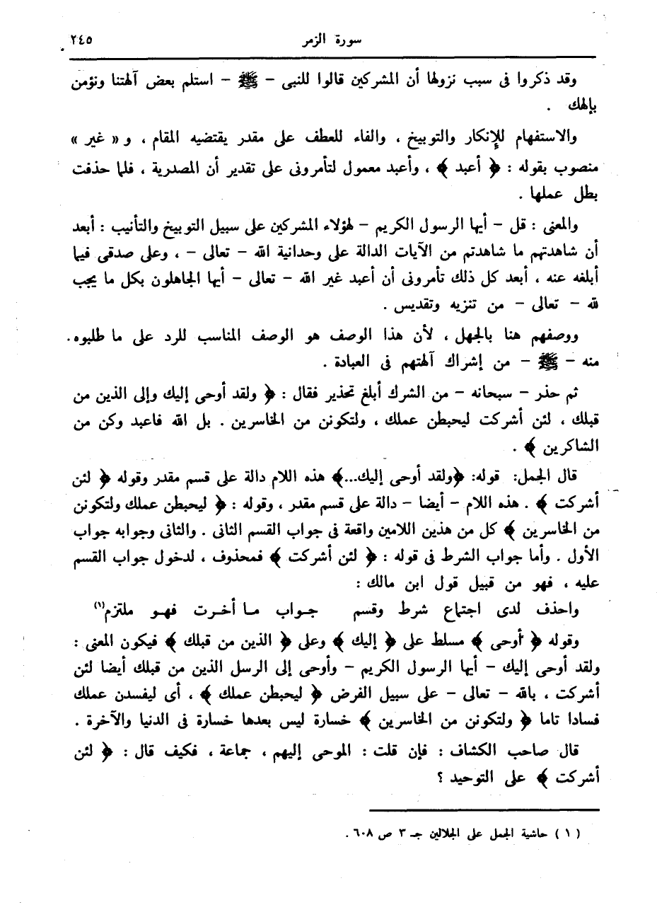 (1) حاشية الجمل على الجلالين ج 3 ص 608.