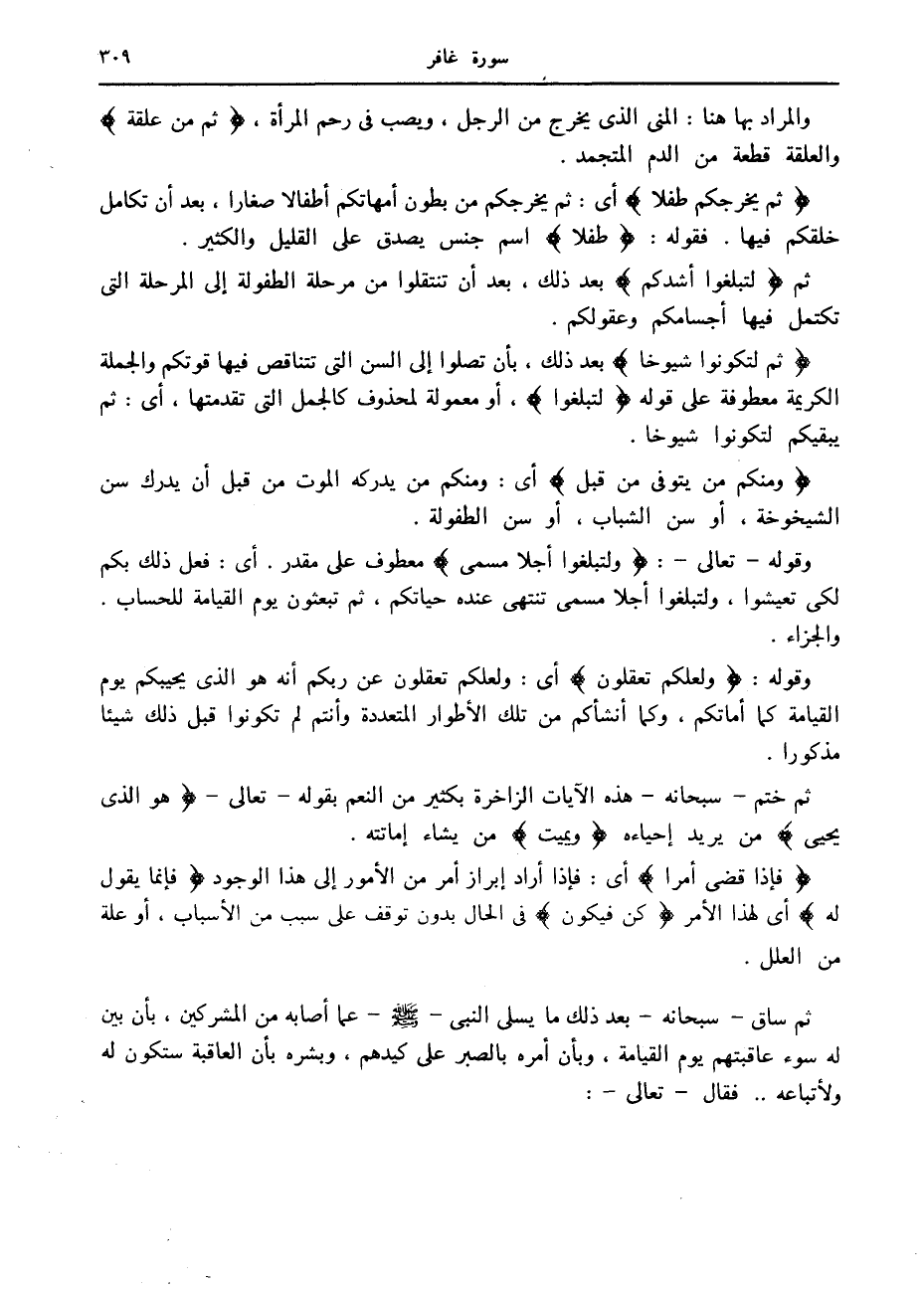 ثُمَّ لِتَكُونُوا شُيُوخاً بعد ذلك، بأن تصلوا إلى السن التي تتناقص فيها قوتكم والجملة الكريمة معطوفة على قوله لِتَبْلُغُوا، أو معمولة لمحذوف كالجمل التي تقدمتها، أى: ثم يبقيكم لتكونوا شيوخا.