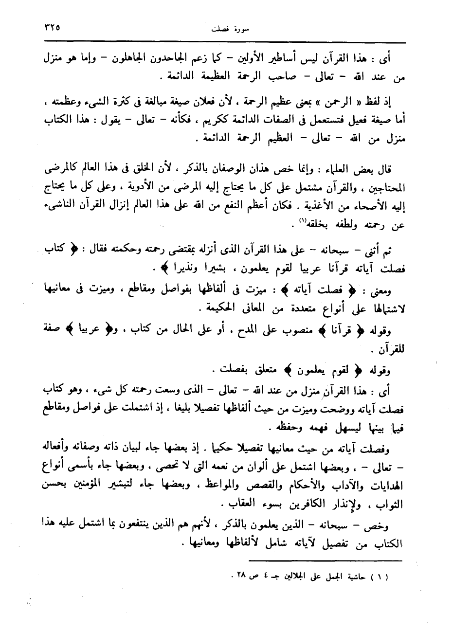 (1) حاشية الجمل على الجلالين ج 4 ص 28.