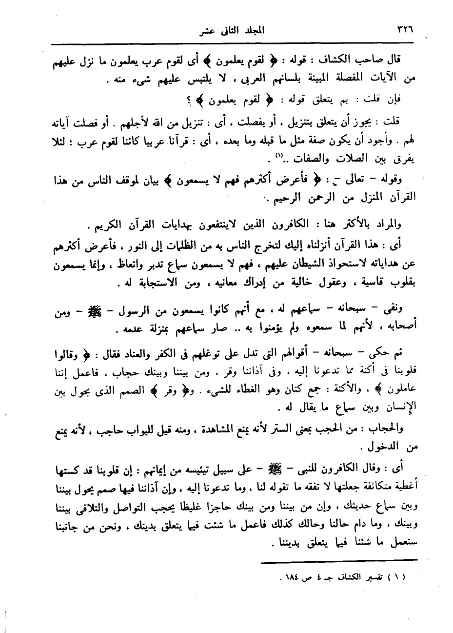 قال صاحب الكشاف: قوله: لِقَوْمٍ يَعْلَمُونَ أى لقوم عرب يعلمون ما نزل عليهم من الآيات المفصلة المبينة بلسانهم العربي، لا يلتبس عليهم شيء منه.