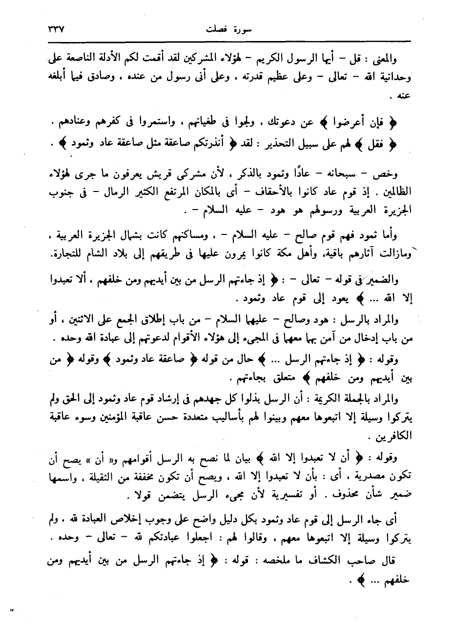 والضمير في قوله- تعالى-: إِذْ جاءَتْهُمُ الرُّسُلُ مِنْ بَيْنِ أَيْدِيهِمْ وَمِنْ خَلْفِهِمْ، أَلَّا تَعْبُدُوا إِلَّا اللَّهَ ... يعود إلى قوم عاد وثمود.
