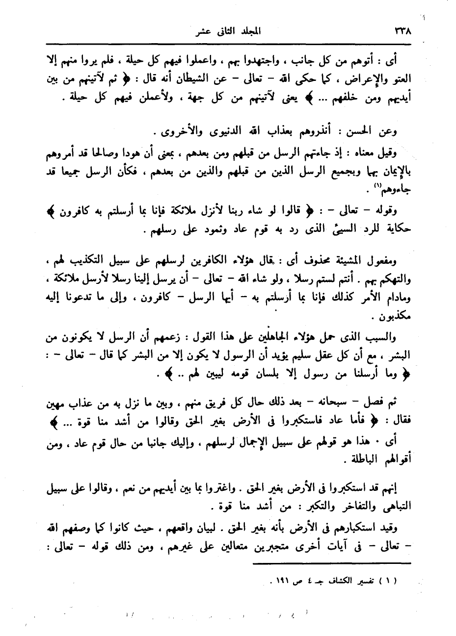 وقيل معناه: إذ جاءتهم الرسل من قبلهم ومن بعدهم، بمعنى أن هودا وصالحا قد أمروهم بالإيمان بهما وبجميع الرسل الذين من قبلهم والذين من بعدهم، فكأن الرسل جميعا قد جاءوهم «1» .