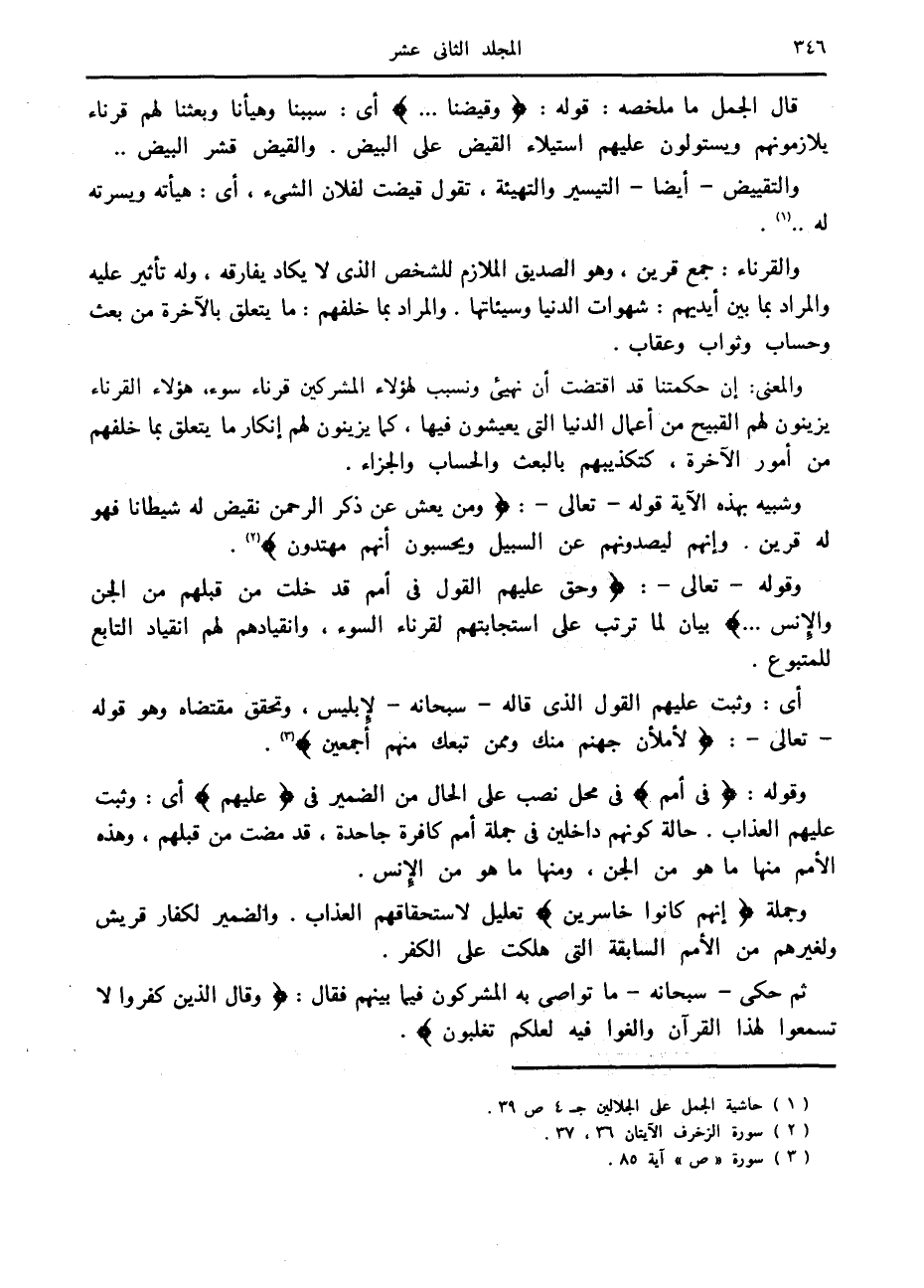 (1) حاشية الجمل على الجلالين ج 4 ص 39.