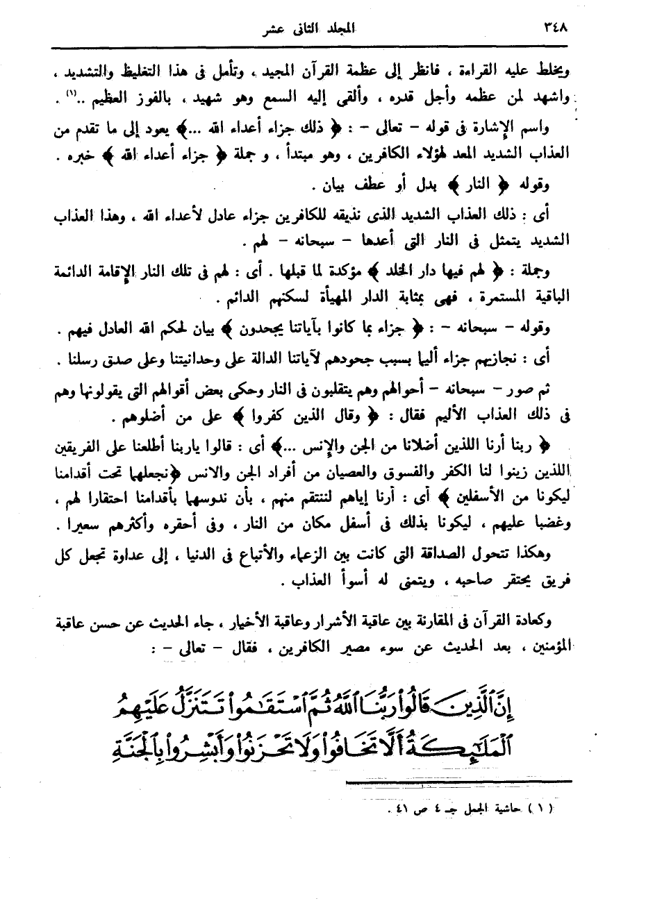 ويخلط عليه القراءة، فانظر إلى عظمة القرآن المجيد، وتأمل في هذا التغليظ والتشديد، واشهد لمن عظمه وأجل قدره، وألقى إليه السمع وهو شهيد، بالفوز العظيم.. «1» .