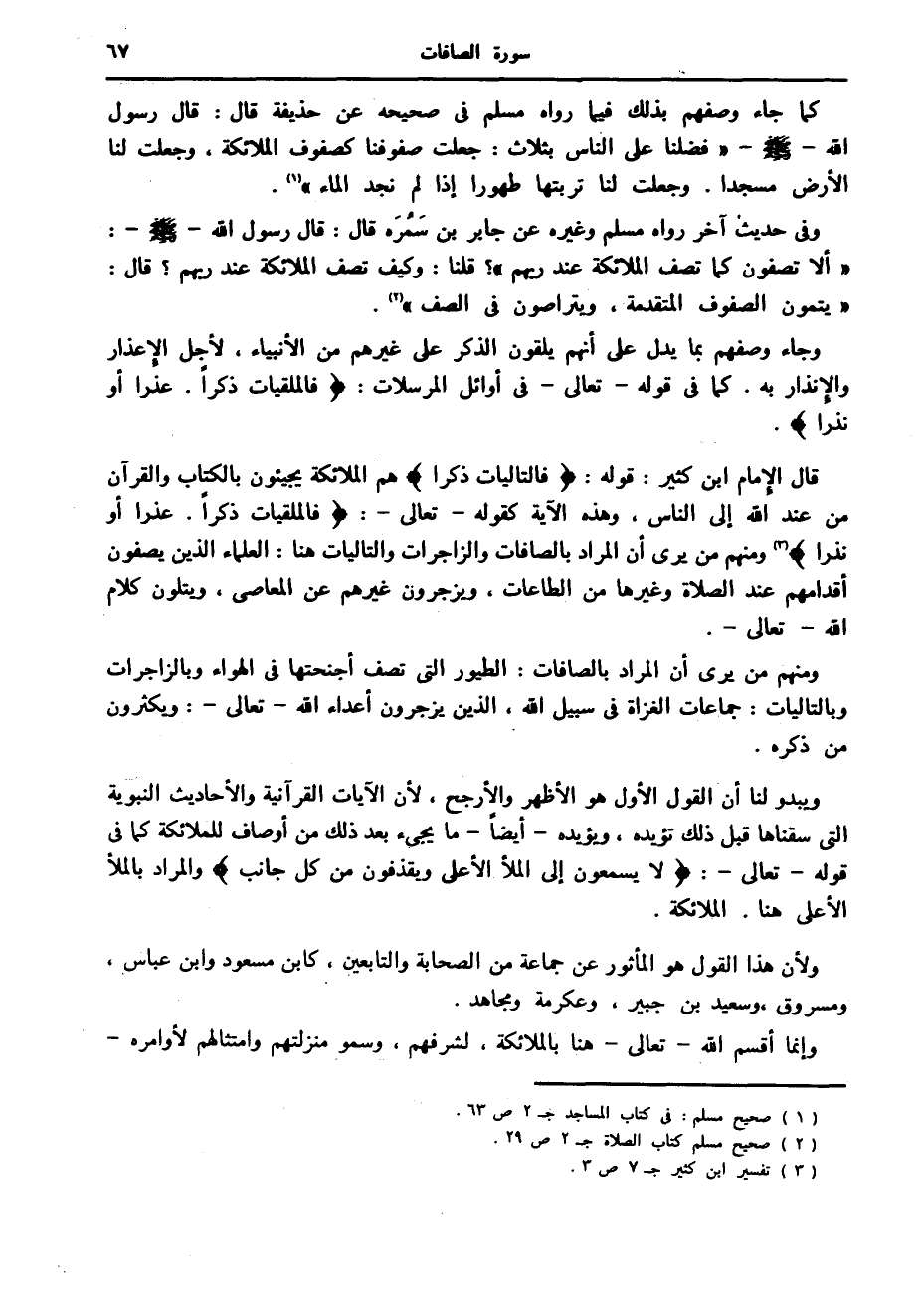 ويبدو لنا أن القول الأول هو الأظهر والأرجح، لأن الآيات القرآنية والأحاديث النبوية التي سقناها قبل ذلك تؤيده، ويؤيده- أيضا- ما يجيء بعد ذلك من أوصاف للملائكة كما في قوله- تعالى-: لا يَسَّمَّعُونَ إِلَى الْمَلَإِ الْأَعْلى وَيُقْذَفُونَ مِنْ كُلِّ جانِبٍ والمراد بالملإ الأعلى هنا. الملائكة.