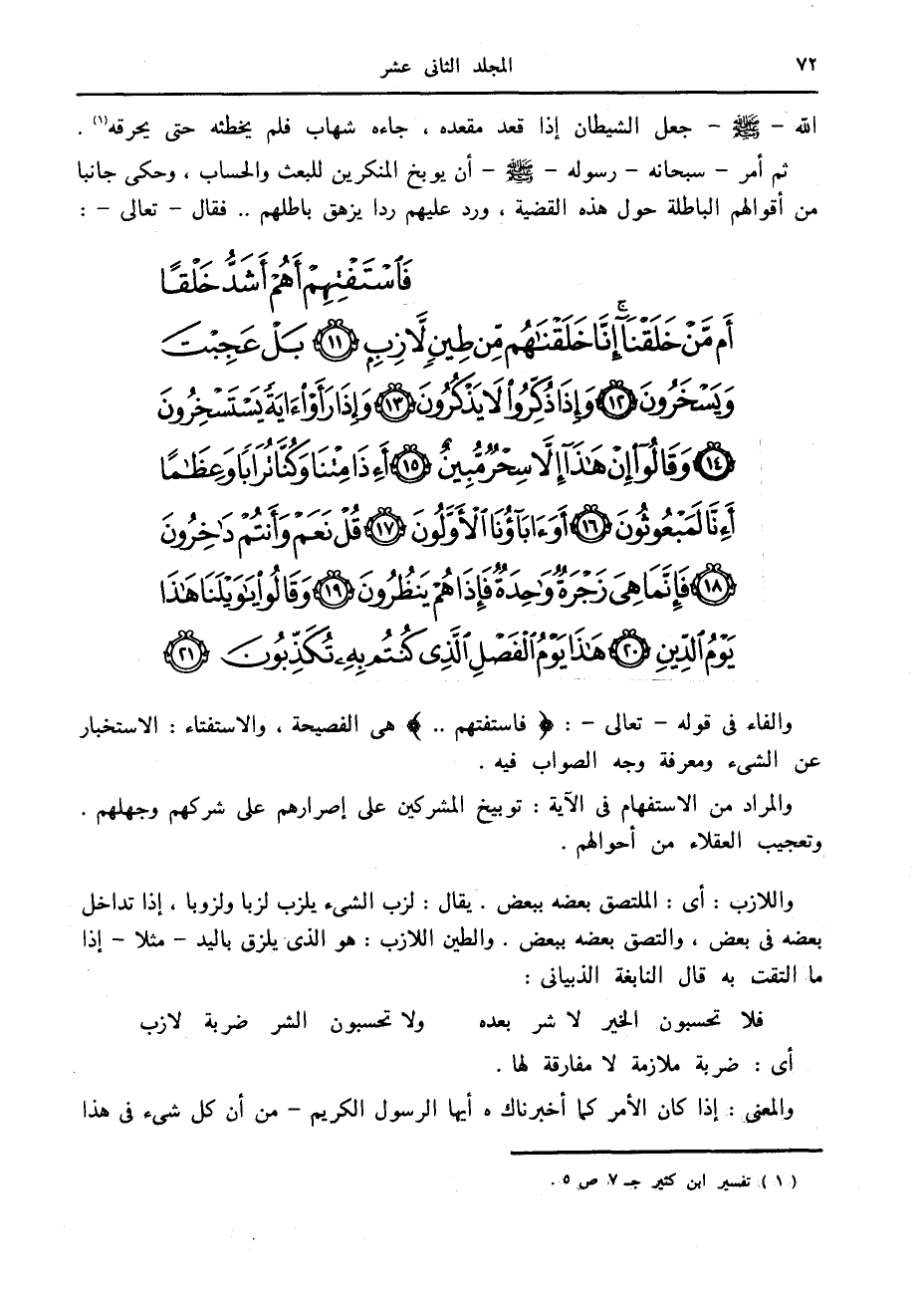 فَاسْتَفْتِهِمْ أَهُمْ أَشَدُّ خَلْقاً أَمْ مَنْ خَلَقْنا إِنَّا خَلَقْناهُمْ مِنْ طِينٍ لازِبٍ (11) بَلْ عَجِبْتَ وَيَسْخَرُونَ (12) وَإِذا ذُكِّرُوا لا يَذْكُرُونَ (13) وَإِذا رَأَوْا آيَةً يَسْتَسْخِرُونَ (14) وَقالُوا إِنْ هذا إِلاَّ سِحْرٌ مُبِينٌ (15)