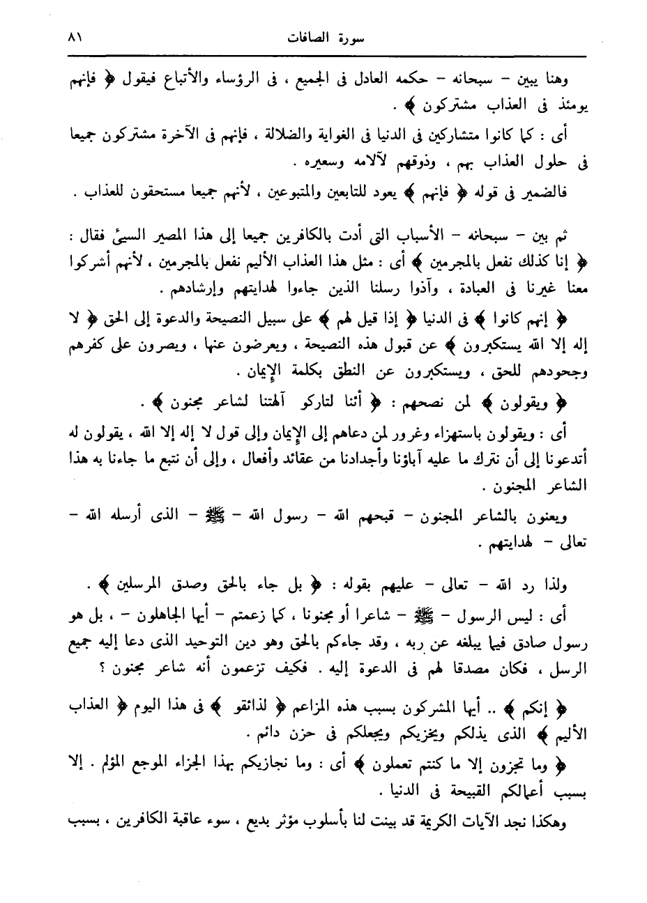 ويعنون بالشاعر المجنون- قبحهم الله- رسول الله صلّى الله عليه وسلم الذي أرسله الله- تعالى- لهدايتهم.