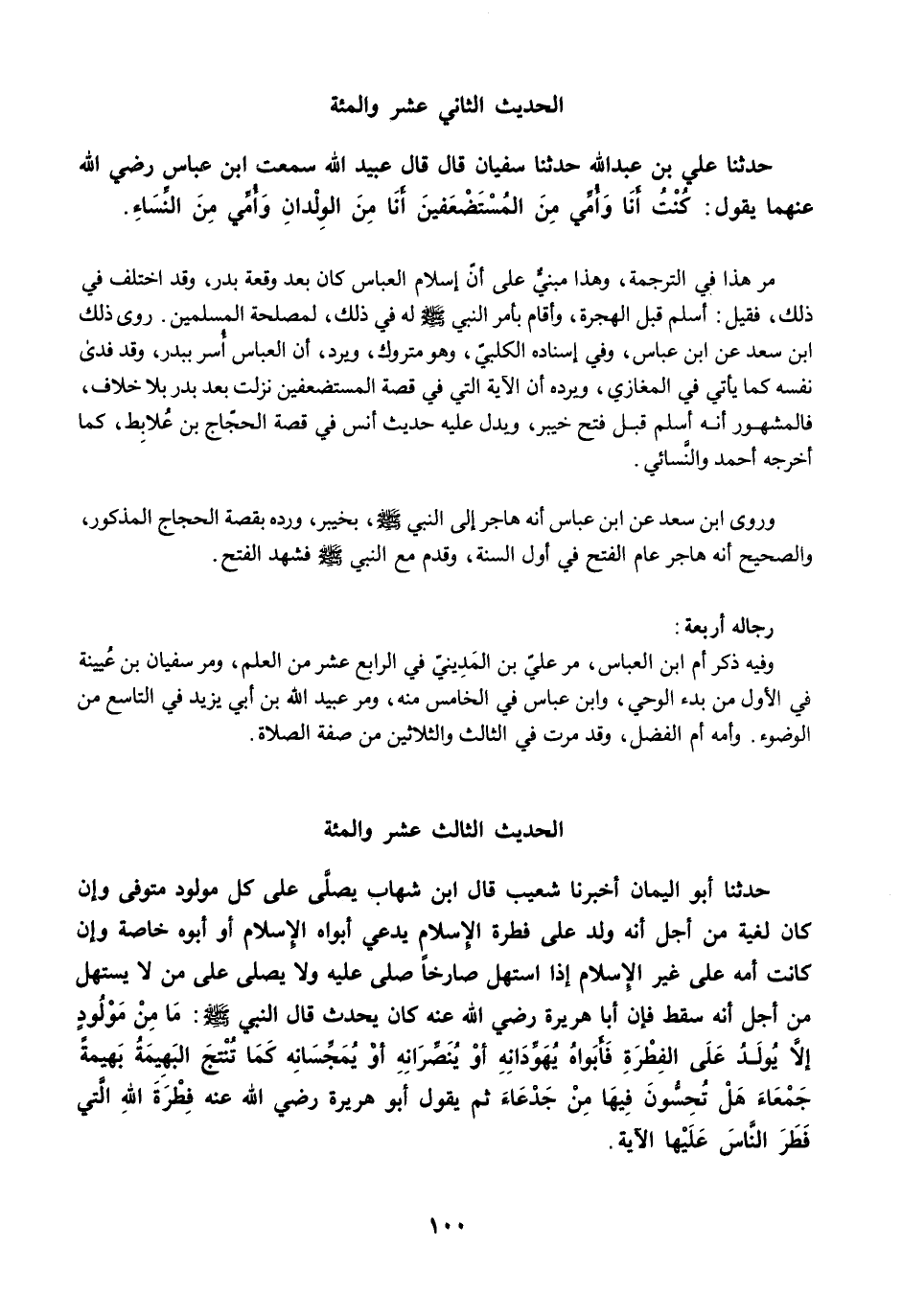 وفيه ذكر أم ابن العباس، مرَّ عليّ بن المَدِينيّ في الرابع عشر من العلم، ومرَّ سفيان بن عُيينة في الأول من بدء الوحي، وابن عباس في الخامس منه، ومرَّ عبيد الله بن أبي يزيد في التاسع من الوضوء. وأمه أم الفضل، وقد مرت في الثالث والثلاثين من صفة الصلاة.
