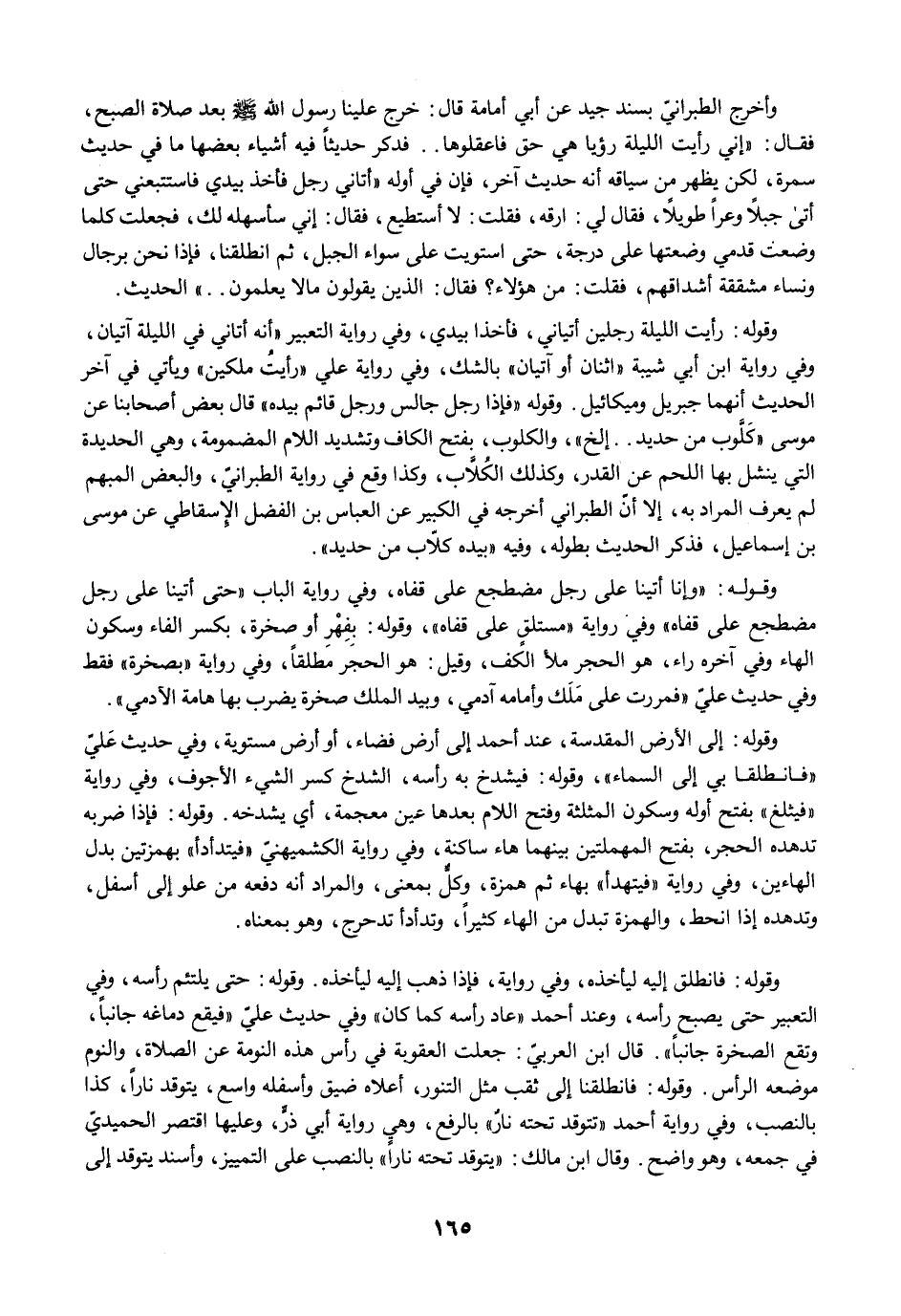 وأخرج الطبراني بسند جيد عن أبي أمامة قال: خرج علينا رسول الله -صلى الله عليه وسلم- بعد صلاة الصبح، فقال: "إني رأيت الليلة رؤيا هي حق فاعقلوها .. فدكر حديثًا فيه أشياء بعضها ما في حديث سمرة، لكن يظهر من سياقه أنه حديث آخر، فإن في أوله "أتاني رجل فأخذ بيدي فاستتبعني حتى أتى جبلًا وعرًا طويلًا، فقال لي: ارقه، فقلت: لا أستطيع، فقال: إني سأسهله لك، فجعلت كلما وضعت قدمي وضعتها على درجة، حتى استويت على سواء الجبل، ثم انطلقنا، فإذا نحن برجال ونساء مشققة أشداقهم، فقلت: من هؤلاء؟ فقال: الذين يقولون ما لا يعلمون .. " الحديث.