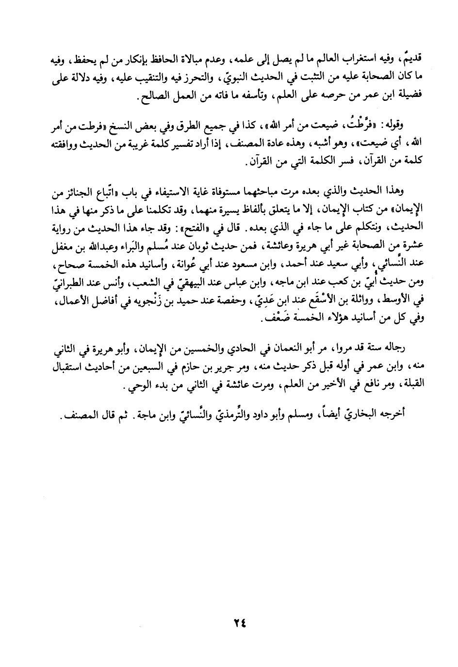 وقوله: "فرَّطْتُ، ضيعت من أمر الله"، كذا في جميع الطرق وفي بعض النسخ "فرطت من أمر الله، أي ضيعت"، وهو أشبه، وهذه عادة المصنف، إذا أراد تفسير كلمة غريبة من الحديث ووافقته كلمة من القرآن، فسر الكلمة التي من القرآن.