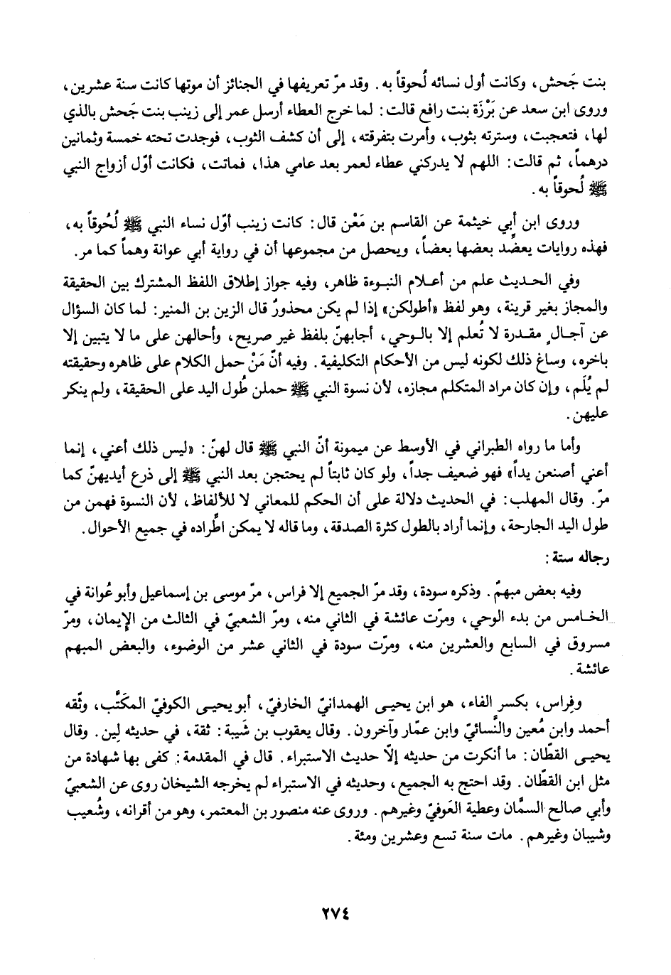 وروى ابن أبي خيثمة عن القاسم بن مَعْن قال: كانت زينب أوّل نساء النبي -صلى الله عليه وسلم- لُحُوقًا به، فهذه روايات يعضِّد بعضها بعضًا، ويحصل من مجموعها أن في رواية أبي عوانة وهمًا كما مرَّ.