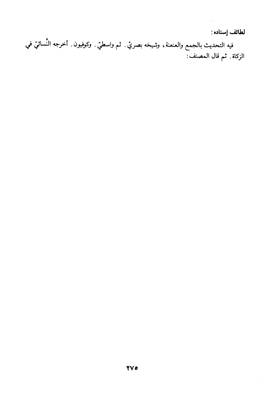 فيه التحديث بالجمع والعنعنة، وشيخه بصريّ. ثم واسطيّ. وكوفيون. أخرجه النَّسائيّ في الزكاة. ثم قال المصنف: