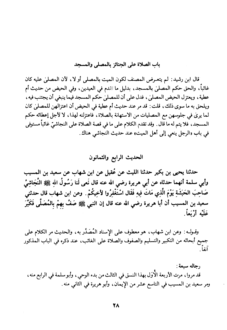 وقوله: وعن ابن شهاب، هو معطوف على الإِسناد المُصَدَّر به، والحديث مرَّ الكلام على جميع أبحاثه من التكبير والتسليم والصفوف والصلاة على الغائب، عند ذكره في الباب المذكور آنفًا.