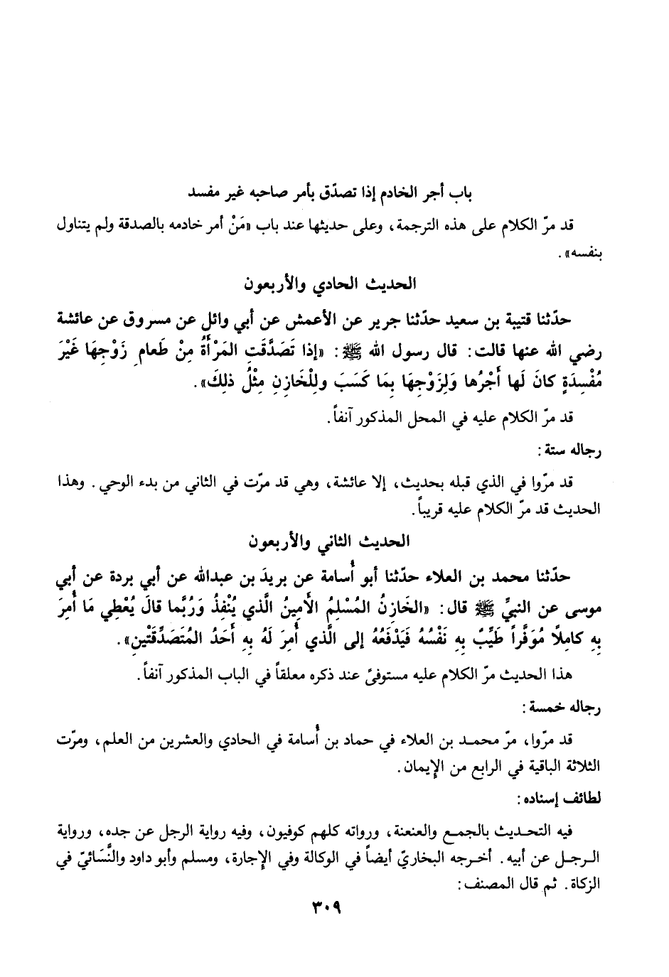 حَدَّثَنَا مُحَمَّدُ بْنُ الْعَلاَءِ حَدَّثَنَا أَبُو أُسَامَةَ عَنْ بُرَيْدِ بْنِ عَبْدِ اللَّهِ عَنْ أَبِي بُرْدَةَ عَنْ أَبِي مُوسَى عَنِ النَّبِيِّ -صلى الله عليه وسلم- قَالَ: "الْخَازِنُ الْمُسْلِمُ الأَمِينُ الَّذِي يُنْفِذُ وَرُبَّمَا قَالَ يُعْطِي مَا أُمِرَ بِهِ كَامِلاً مُوَفَّرًا طَيِّبٌ بِهِ نَفْسُهُ، فَيَدْفَعُهُ إِلَى الَّذِي أُمِرَ لَهُ بِهِ، أَحَدُ الْمُتَصَدِّقَيْنِ".
