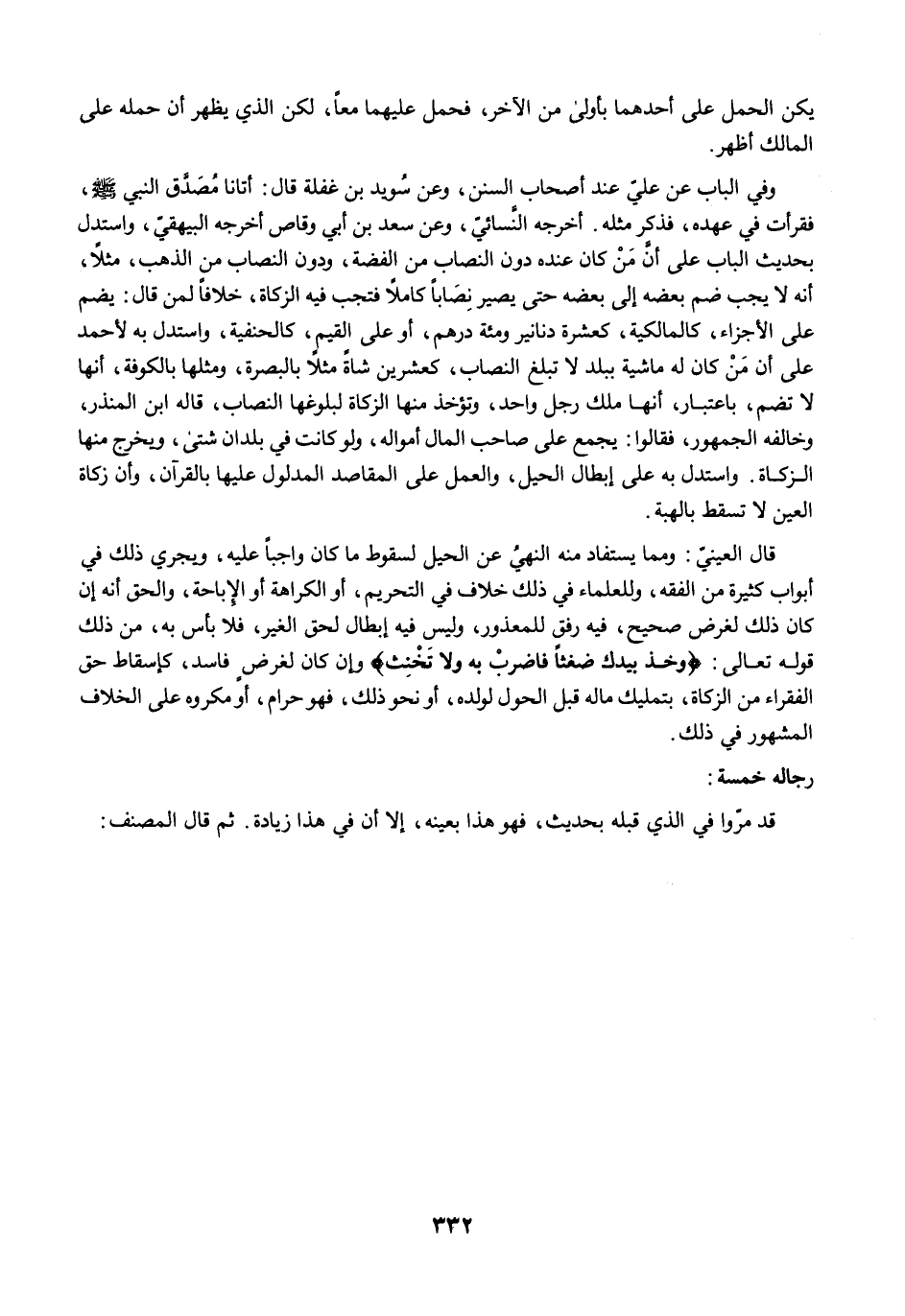 قال العينيّ: ومما يستفاد منه النهيُ عن الحيل لسقوط ما كان واجبًا عليه، ويجري ذلك في أبواب كثيرة من الفقه، وللعلماء في ذلك خلاف في التحريم، أو الكراهة أو الإباحة، والحق أنه إن كان ذلك لغرض صحيح، فيه رفق للمعذور، وليس فيه إبطال لحق الغير، فلا بأس به، من ذلك قوله تعالى: {وَخُذْ بِيَدِكَ ضِغْثًا فَاضْرِبْ بِهِ وَلَا تَحْنَثْ} وإن كان لغرضٍ فاسد، كإسقاط حق الفقراء من الزكاة، بتمليك ماله قبل الحول لولده، أو نحو ذلك، فهو حرام، أو مكروه على الخلاف المشهور في ذلك.