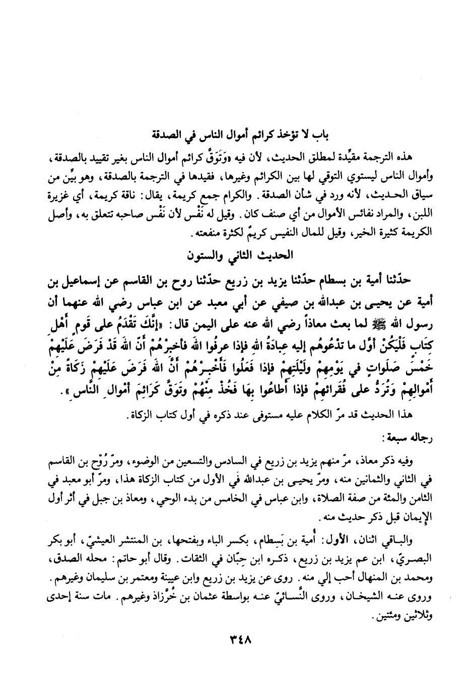 وفيه ذكر معاذ، مرّ منهم يزيد بن زريع في السادس والتسعين من الوضوء ومرّ رُوْح بن القاسم في الثاني والثمانين منه، ومرّ يحيى بن عبد الله في الأول من كتاب الزكاة هذا، ومرّ أبو معبد في الثامن والمئة من صفة الصلاة، وابن عباس في الخامس من بدء الوحي، ومعاذ بن جبل في أثر أول الإيمان قبل ذكر حديث منه.