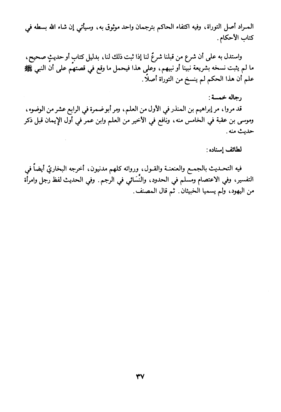 واستدل به على أن شرع من قبلنا شرعٌ لنا إذا ثبت ذلك لنا، بدليل كتابٍ أو حديثٍ صحيح، ما لم يثبت نسخه بشريعة نبينا أو نبيهم، وعلى هذا فيحمل ما وقع في قصتهم على أن النبي -صلى الله عليه وسلم- علم أن هذا الحكم لم ينسخ من التوراة أصلًا.