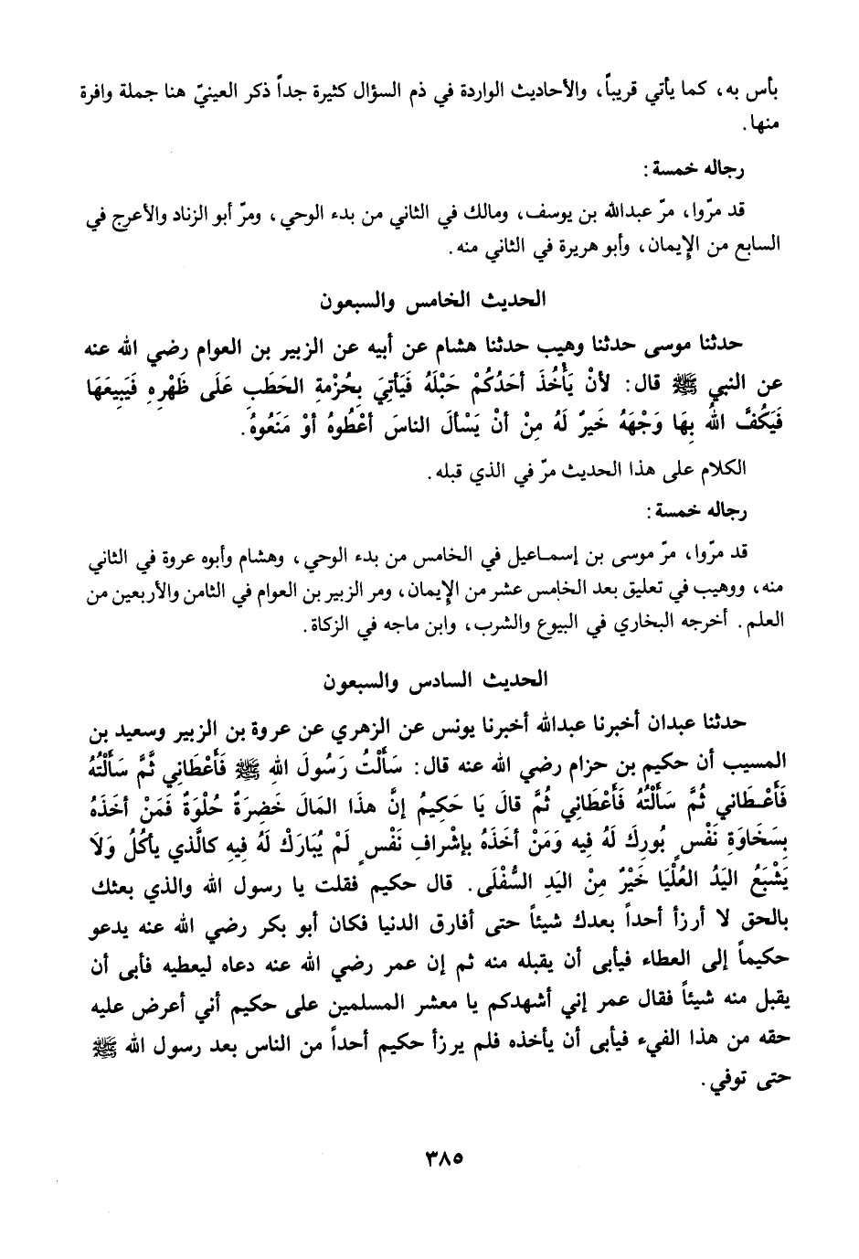 قد مرّوا، مرّ موسى بن إسماعيل في الخامس من بدء الوحي، وهشام وأبوه عروة في الثاني منه، ووهيب في تعليق بعد الخامس عشر من الإيمان، ومرَّ الزبير بن العوام في الثامن والأربعين من العلم. أخرجه البخاري في البيوع والشرب، وابن ماجه في الزكاة.