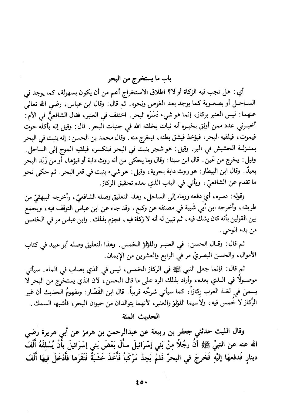 ثم قال: وقال الحسن: في العنبر واللؤلؤ الخمس. وهذا التعليق وصله أبو عبيد في كتاب الأموال، والحسن البصريّ مرَّ في الرابع والعشرين من الإيمان.