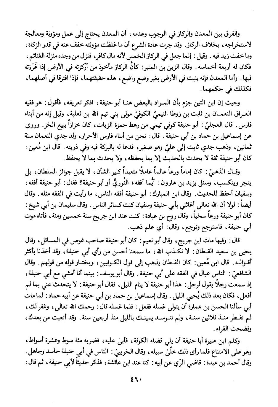 قال: وفيها مات ابن جريج، وقال أبو نعيم: كان أبو حنيفة صاحب غوص في المسائل، وقال يحيى بن سعيد القطان: لا نكذب الله، ما سمعنا أحسن من رأي أبي حنيفة، وقد أخذنا بأكثر أقواله. قال ابن مُعين: كان القطان يذهب إلى قول الكوفيين، ويختار قوله من قولهم. وقال الشافعيّ: الناس عيال في الفقه على أبي حنيفة. وقال أبو يوسف: بينما أنا أمشي مع أبي حنيفة، إذ سمعت رجلًا يقول لرجل: هذا أبو حنيفة لا ينام الليل، فقال أبو حنيفة: لا يتحدث عني بما لم أفعل، فكان بعد ذلك يُحيي الليل. وقال إسماعيل بن حماد بن أبي حنيفة عن أبيه حماد: لما مات أبي سألنا الحسن بن عمارة أن يتولى غسله ففعل: فلما غسله قال: رحمك الله تعالى، وغفر لك، لم تفطر منذ ثلاثين سنة، ولم تتوسد يمينك بالليل منذ أربعين سنة. وقد أتعبت من بعدك، وفضحت القراء.