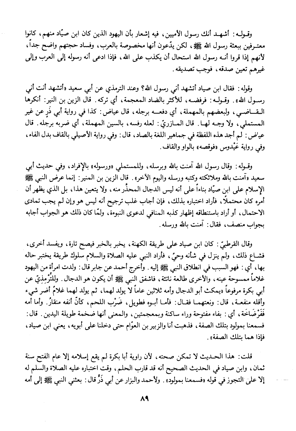 قلت: هذا الحديث لا تمكن صحته, لأن راوية أبا بكرة لم يقع إسلامه إلا عام الفتح سنة ثمان، وابن صياد في الحديث الصحيح أنه قد قارب الحلم، وقت اختباره عليه الصلاة والسلام له إلا على التجوز في قوله "فسمعنا بمولود". ولأحمد والبزار عن أبي ذَرٍّ قال: بعثني النبي -صلى الله عليه وسلم- إلى أمه