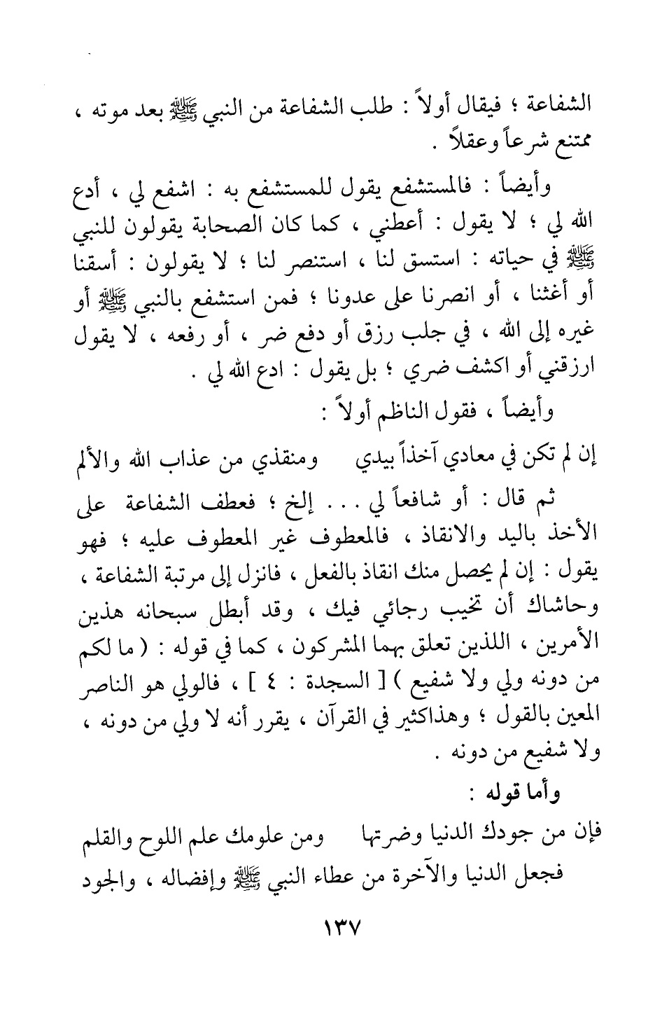 الشفاعة، فيقال أولا: طلب الشفاعة من النبي صلى الله عليه وسلم بعد موته ممتنع شرعا وعقلا.