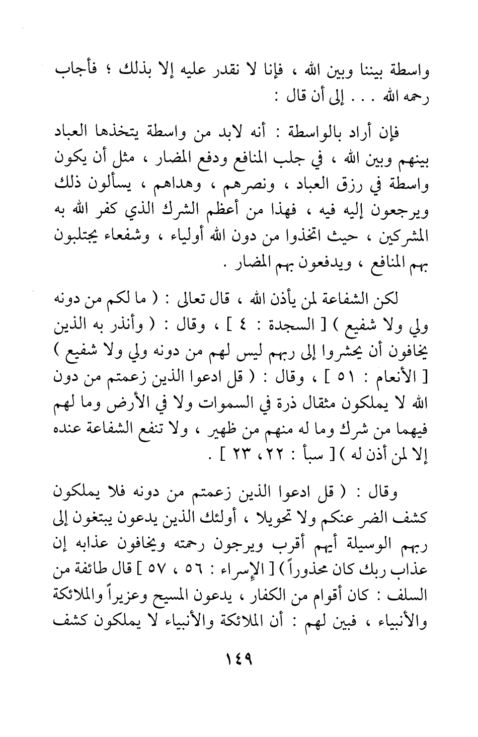 واسطة بيننا وبين الله، فإنا لا نقدر عليه إلا بذلك ; فأجاب رحمه الله ... إلى أن قال: