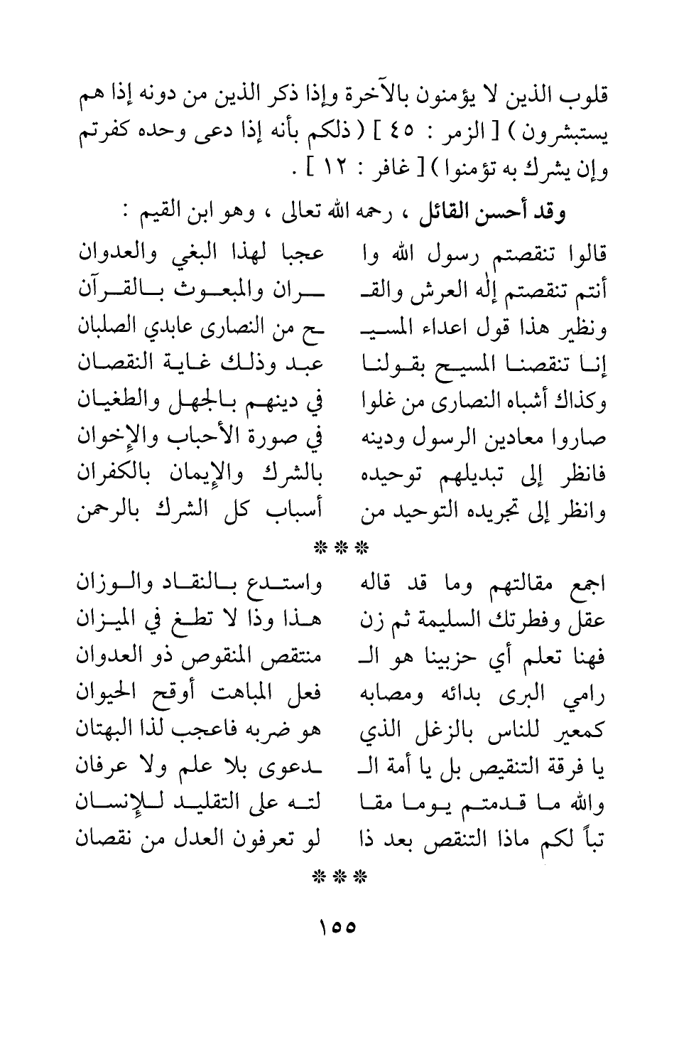 وقد أحسن القائل، رحمه الله تعالى، وهو ابن القيم: