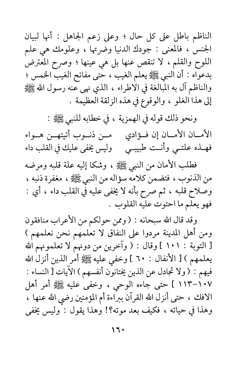 فطلب الأمان من النبي صلى الله عليه وسلم، وشكا إليه علة قلبه ومرضه من الذنوب، فتضمن كلامه سؤاله من النبي صلى الله عليه وسلم مغفرة ذنبه، وصلاح قلبه؛ ثم صرح بأنه لا يخفى عليه في القلب داء، أي: فهو يعلم ما احتوت عليه القلوب.