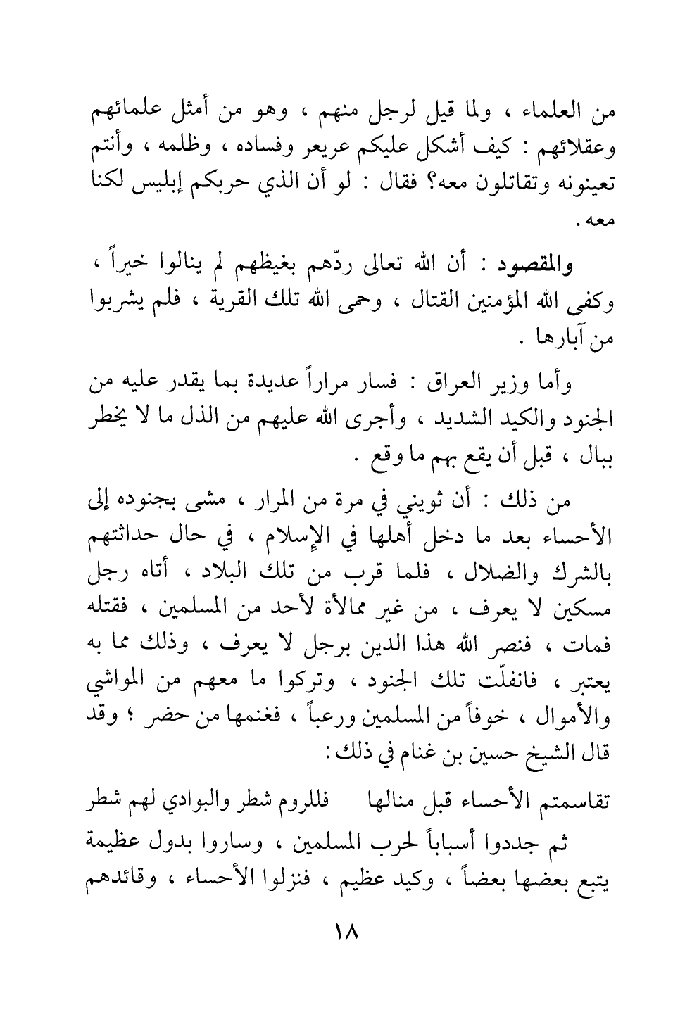 ثم جددوا أسبابا لحرب المسلمين، وساروا بدول عظيمة يتبع بعضها بعضا، وكيد عظيم، فنَزلوا الأحساء، وقائدهم
