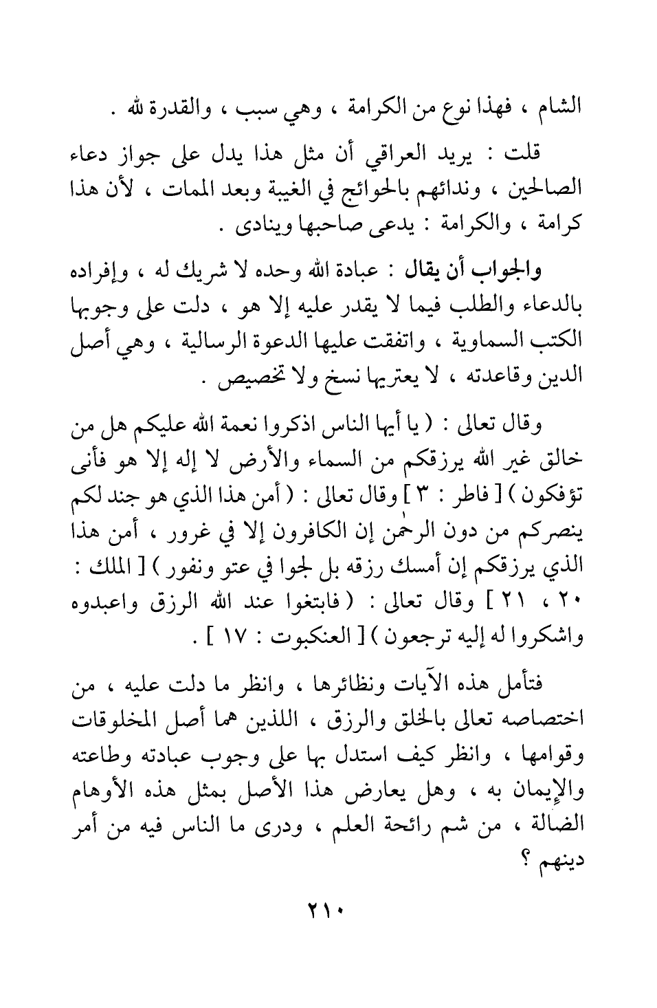 وقال تعالى: {يَا أَيُّهَا النَّاسُ اذْكُرُوا نِعْمَتَ اللَّهِ عَلَيْكُمْ هَلْ مِنْ خَالِقٍ غَيْرُ اللَّهِ يَرْزُقُكُمْ مِنَ السَّمَاءِ وَالْأَرْضِ لا إِلَهَ إِلَّا هُوَ فَأَنَّى تُؤْفَكُونَ} [سورة فاطر آية: 3] ، وقال تعالى: {أَمَّنْ هَذَا الَّذِي هُوَ جُنْدٌ لَكُمْ يَنْصُرُكُمْ مِنْ دُونِ الرَّحْمَنِ إِنِ الْكَافِرُونَ إِلَّا فِي غُرُورٍ أَمَّنْ هَذَا الَّذِي يَرْزُقُكُمْ إِنْ أَمْسَكَ رِزْقَهُ بَلْ لَجُّوا فِي عُتُوٍّ وَنُفُورٍ} [سورة الملك آية: 20-21] وقال تعالى: {فَابْتَغُوا عِنْدَ اللَّهِ الرِّزْقَ وَاعْبُدُوهُ وَاشْكُرُوا لَهُ إِلَيْهِ تُرْجَعُونَ} [سورة العنكبوت آية: 17] .