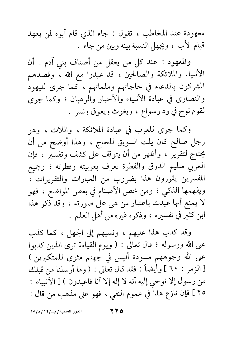 والمعهود عند كل من يعقل من أصناف بني آدم أن الأنبياء والملائكة والصالحين، قد عبدوا مع الله، وقصدهم المشركون بالدعاء في حاجاتهم وملماتهم، كما جرى لليهود والنصارى في عبادة الأنبياء والأحبار والرهبان; وكما جرى لقوم نوح في ود وسواع، ويغوث ويعوق ونسر.
