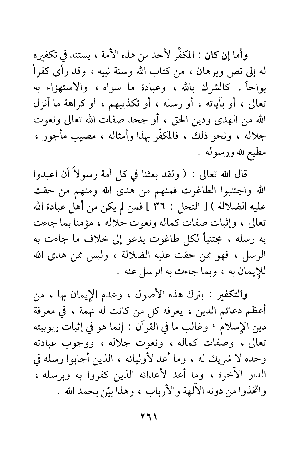 قال الله تعالى: {وَلَقَدْ بَعَثْنَا فِي كُلِّ أُمَّةٍ رَسُولاً أَنِ اعْبُدُوا اللَّهَ وَاجْتَنِبُوا الطَّاغُوتَ فَمِنْهُمْ مَنْ هَدَى اللَّهُ وَمِنْهُمْ مَنْ حَقَّتْ عَلَيْهِ الضَّلالَةُ} [سورة النحل آية:36] ، فمن لم يكن من أهل عبادة الله تعالى وإثبات صفات كماله ونعوت جلاله، مؤمنا بما جاءت به رسله، مجتنبا لكل طاغوت يدعو إلى خلاف ما جاءت به الرسل، فهو ممن حقت عليه الضلالة، وليس ممن هدى الله للإيمان به، وبما جاءت به الرسل عنه.