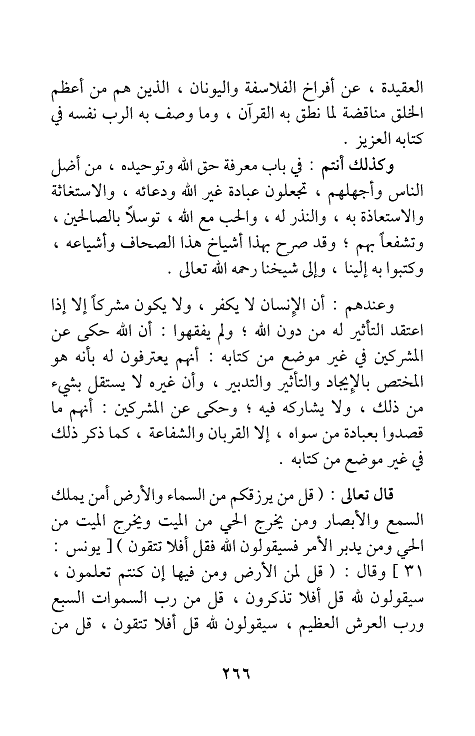 العقيدة عن أفراخ الفلاسفة واليونان، الذين هم من أعظم الخلق مناقضة لما نطق به القرآن، وما وصف به الرب نفسه في كتابه العزيز.