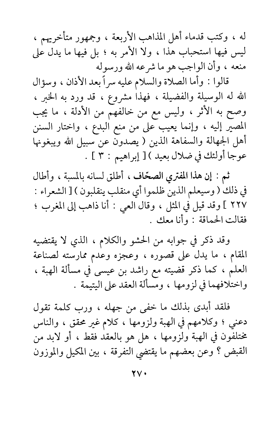 ثم إن هذا المفتري الصحاف، أطلق لسانه بالمسبة، وأطال في ذلك {وَسَيَعْلَمُ الَّذِينَ ظَلَمُوا أَيَّ مُنْقَلَبٍ يَنْقَلِبُونَ} [سورة الشعراء آية: 227] ؛ وقد قيل في المثل، وقال العي: أنا ذاهب إلى المغرب، فقالت الحماقة: وأنا معك.
