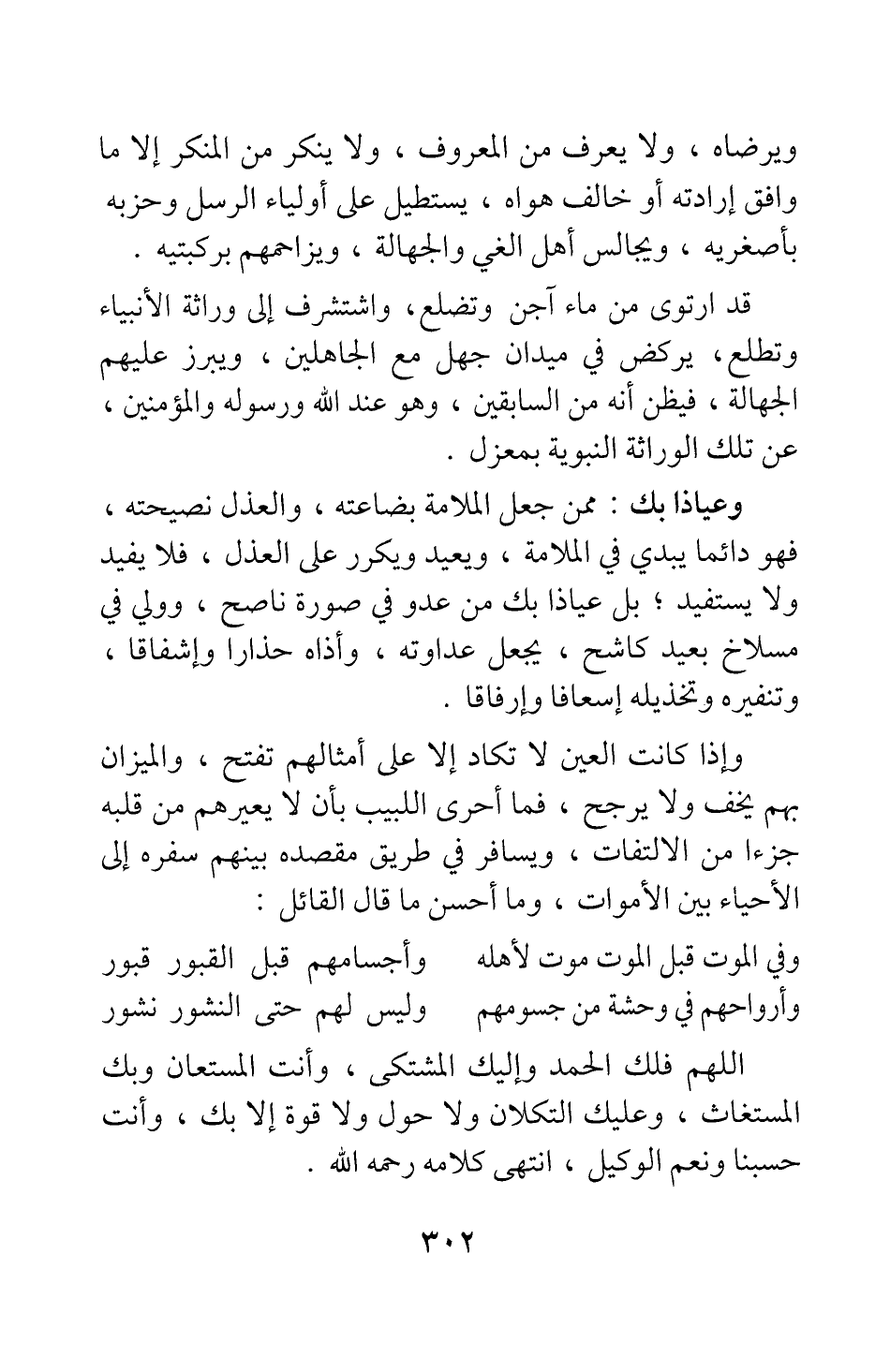 قد ارتوى من ماء آجن وتضلع، واستشرف إلى وراثة الأنبياء وتطلع، يركض في ميدان جهل مع الجاهلين، ويبرز عليهم الجهالة فيظن أنه من السابقين، وهو عند الله ورسوله والمؤمنين، عن تلك الوراثة النبوية بمعزل.