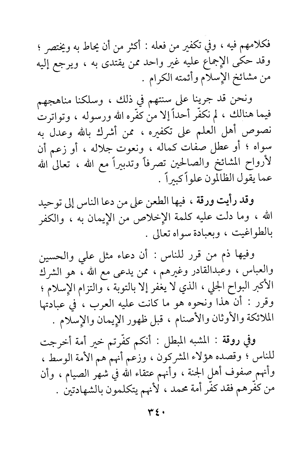 وقد رأيت ورقة، فيها الطعن على من دعا الناس إلى توحيد الله، وما دلت عليه كلمة الإخلاص من الإيمان به، والكفر بالطواغيت، وبعبادة سواه تعالى.