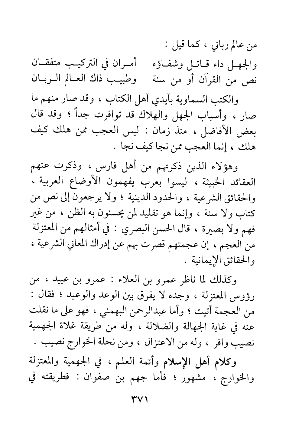 وهؤلاء الذين ذكرتهم من أهل فارس، وذكرت عنهم العقائد الخبيثة، ليسوا بعرب يفهمون الأوضاع العربية، والحقائق الشرعية، والحدود الدينية، ولا يرجعون إلى نص من كتاب ولا سنة، وإنما هو تقليد لمن يحسنون به الظن، من غير فهم ولا بصيرة، قال الحسن البصري في أمثالهم من المعتزلة من العجم: إن عجمتهم قصرت بهم عن إدراك المعاني الشرعية، والحقائق الإيمانية.