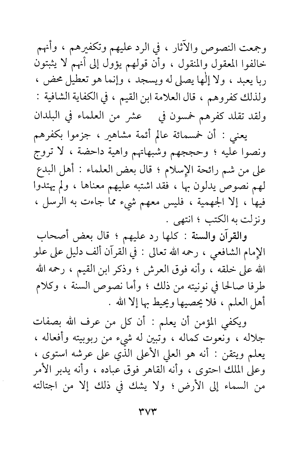 وجمعت النصوص والآثار، في الرد عليهم وتكفيرهم، وأنهم خالفوا المعقول والمنقول، وأن قولهم يؤول إلى أنهم لا يثبتون ربا يعبد، ولا إلها يصلى له ويسجد، وإنما هو تعطيل محض؛ ولذلك كفروهم، قال العلامة ابن القيم، في الكافية الشافية: